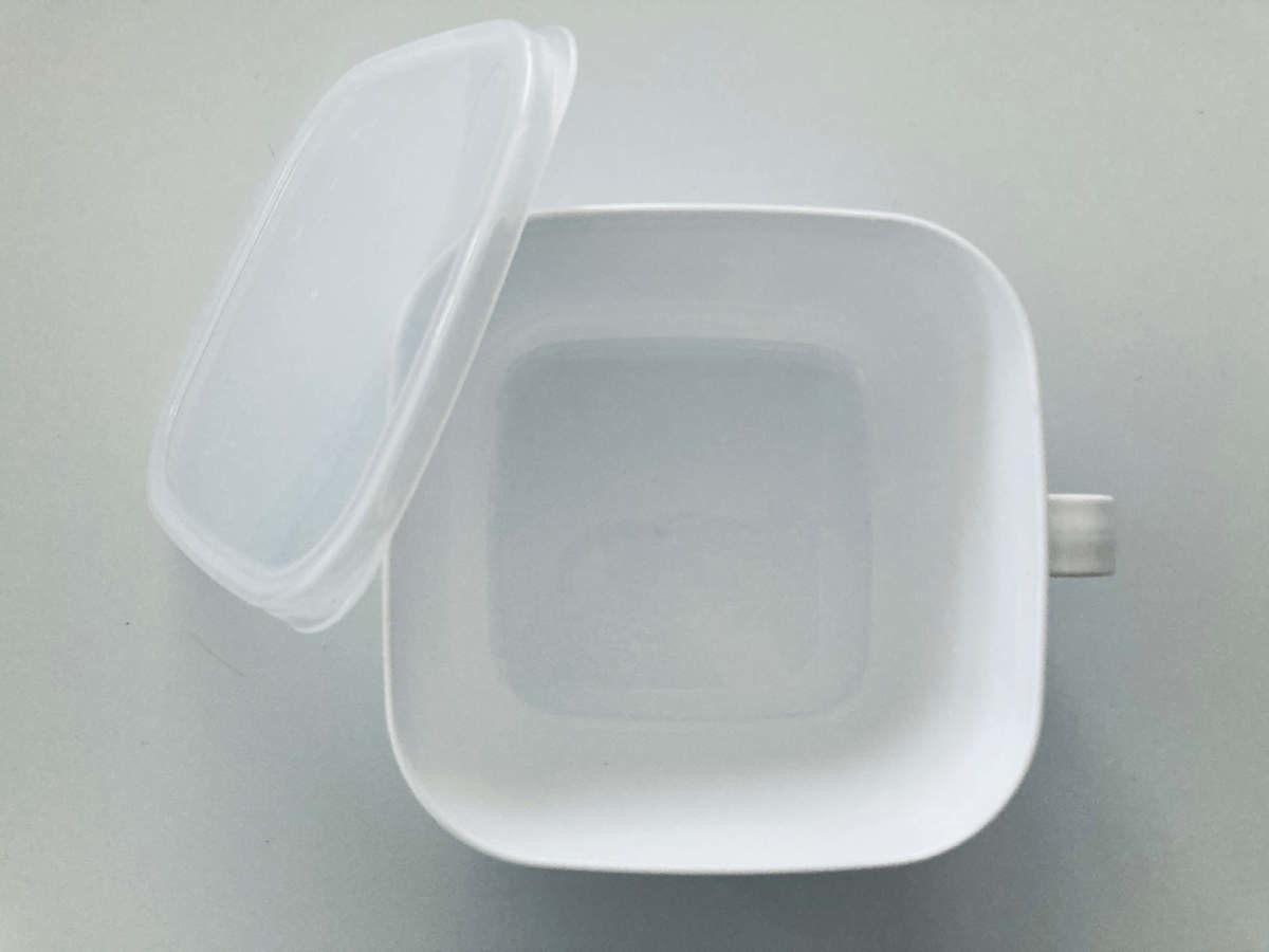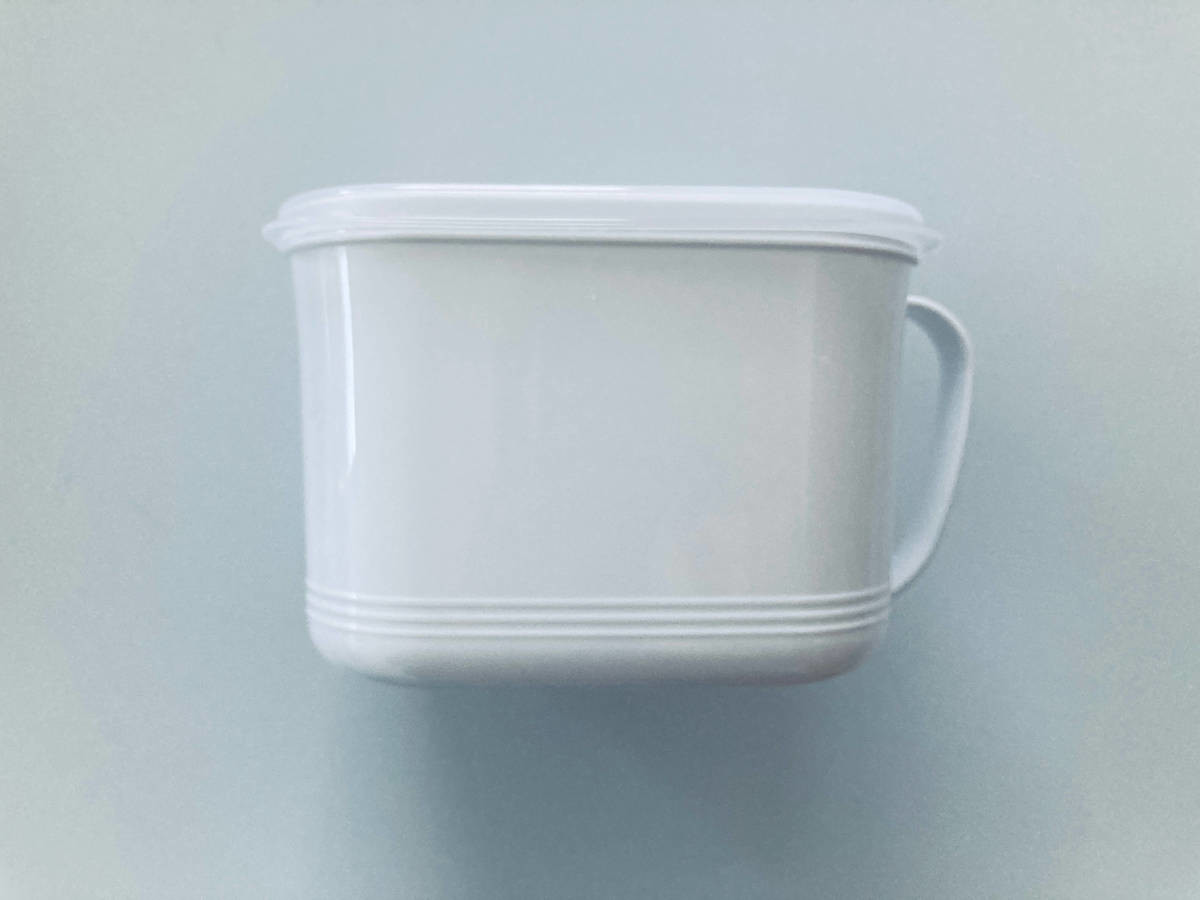セリアのみそストッカーは、750gまでのみそをパックごと入れられる商品。持ち手付きでタッパー風のしっかりとしたフタが付いています。