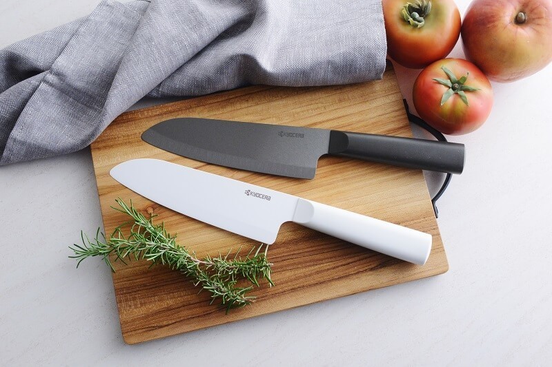 セラミック包丁=カラフルなハンドルのイメージを覆す、「ホワイト」と「ブラック」の2色展開。