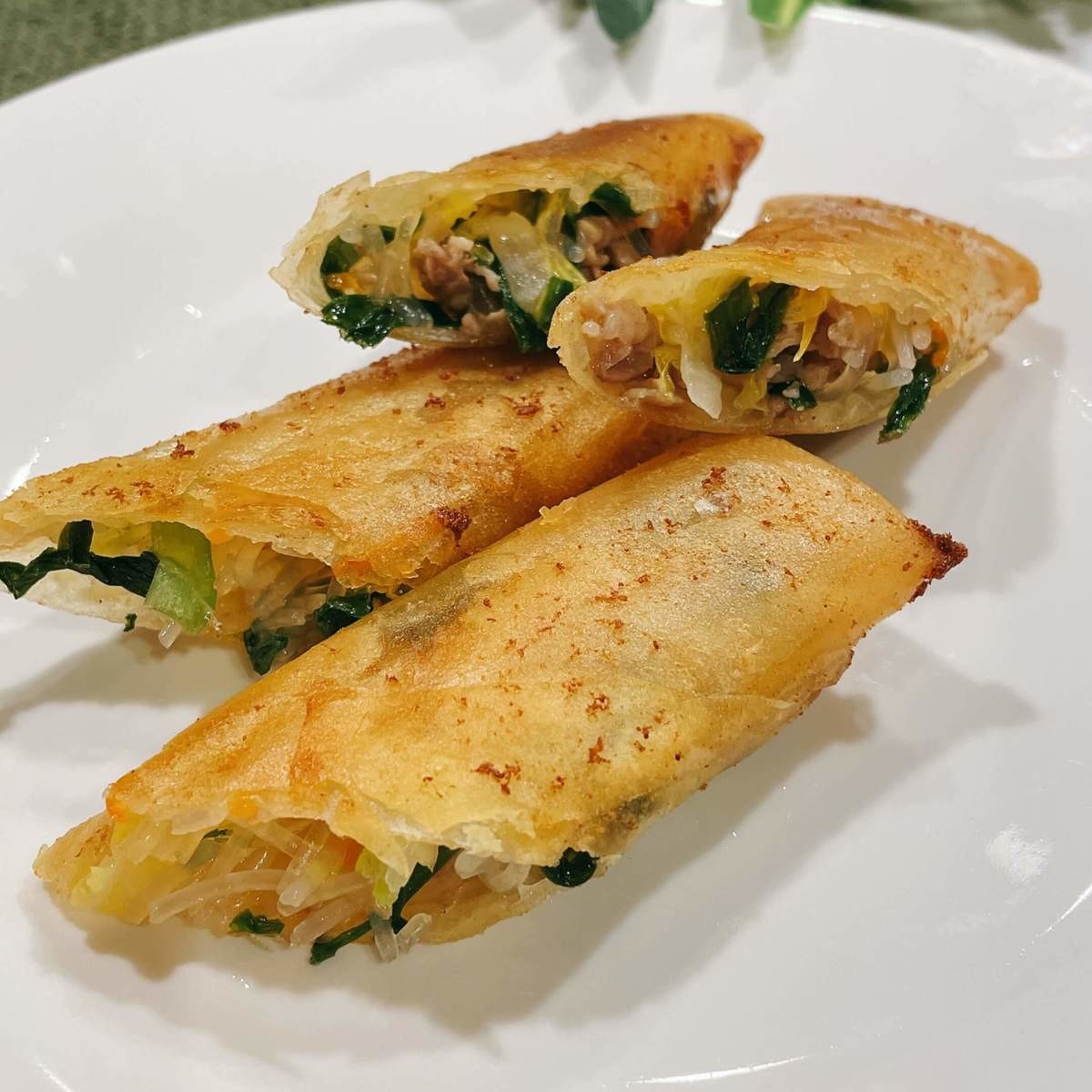 ひとくち噛むとサクッという音と共に肉汁があふれ出てきて舌だけでなく、耳でも楽しめる春巻きを作れますよ!