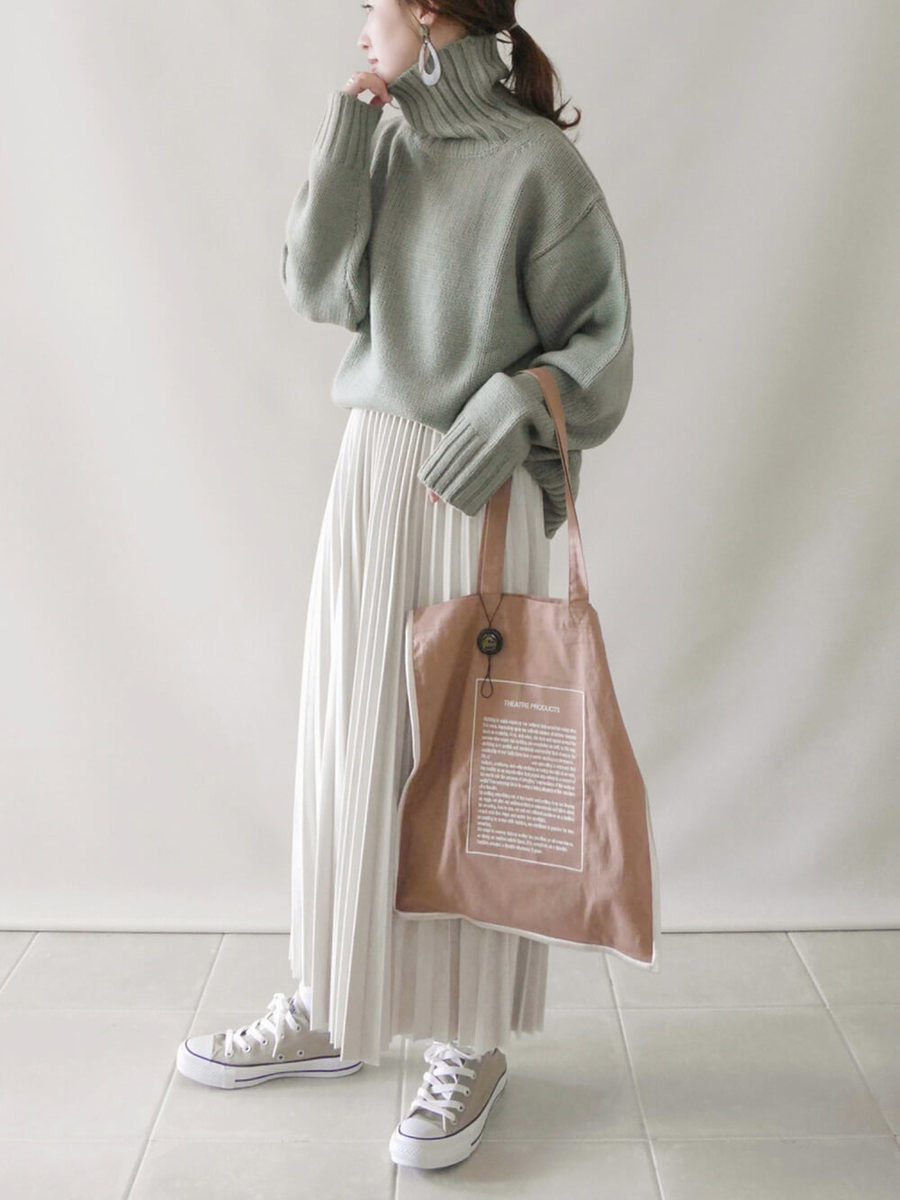 シャツやタートルネックカットソーのレイヤードは、ニットの肌当たりが気になる人にもおすすめです。
