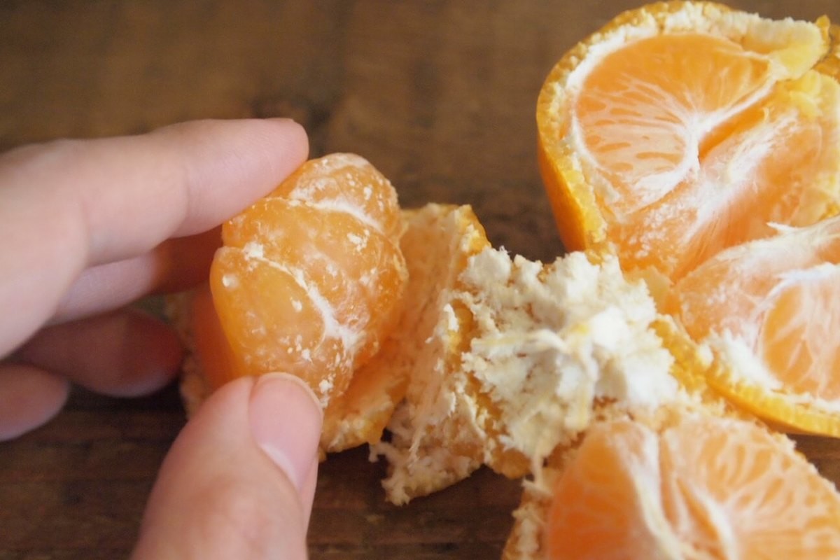 そんなみかんについている「白いスジ」。食感や口当たりが気になるという方も多いと思いますが、実はむき方を少し工夫すると、この白いスジが驚くほど簡単にそしてきれいに取れるんです。