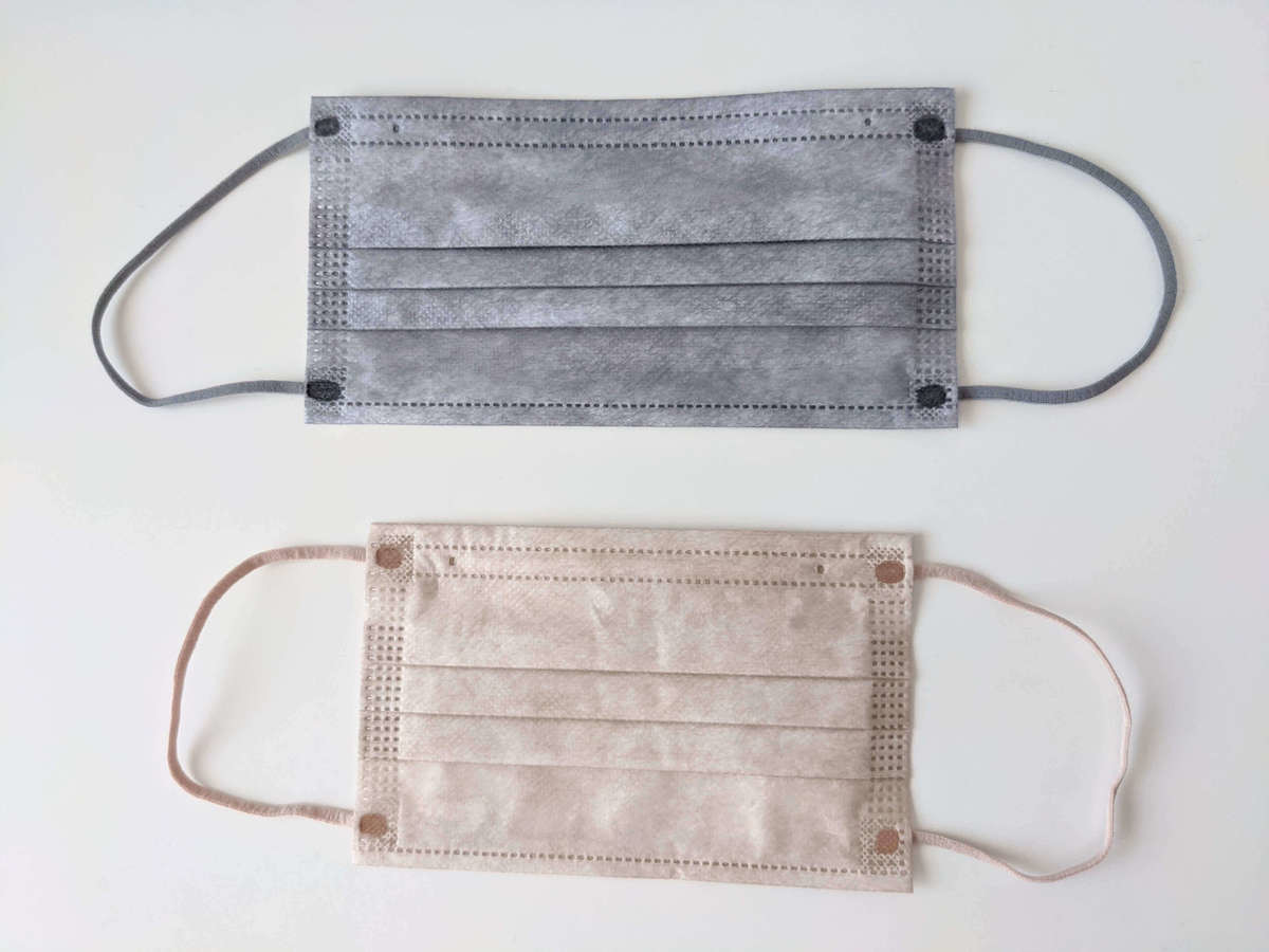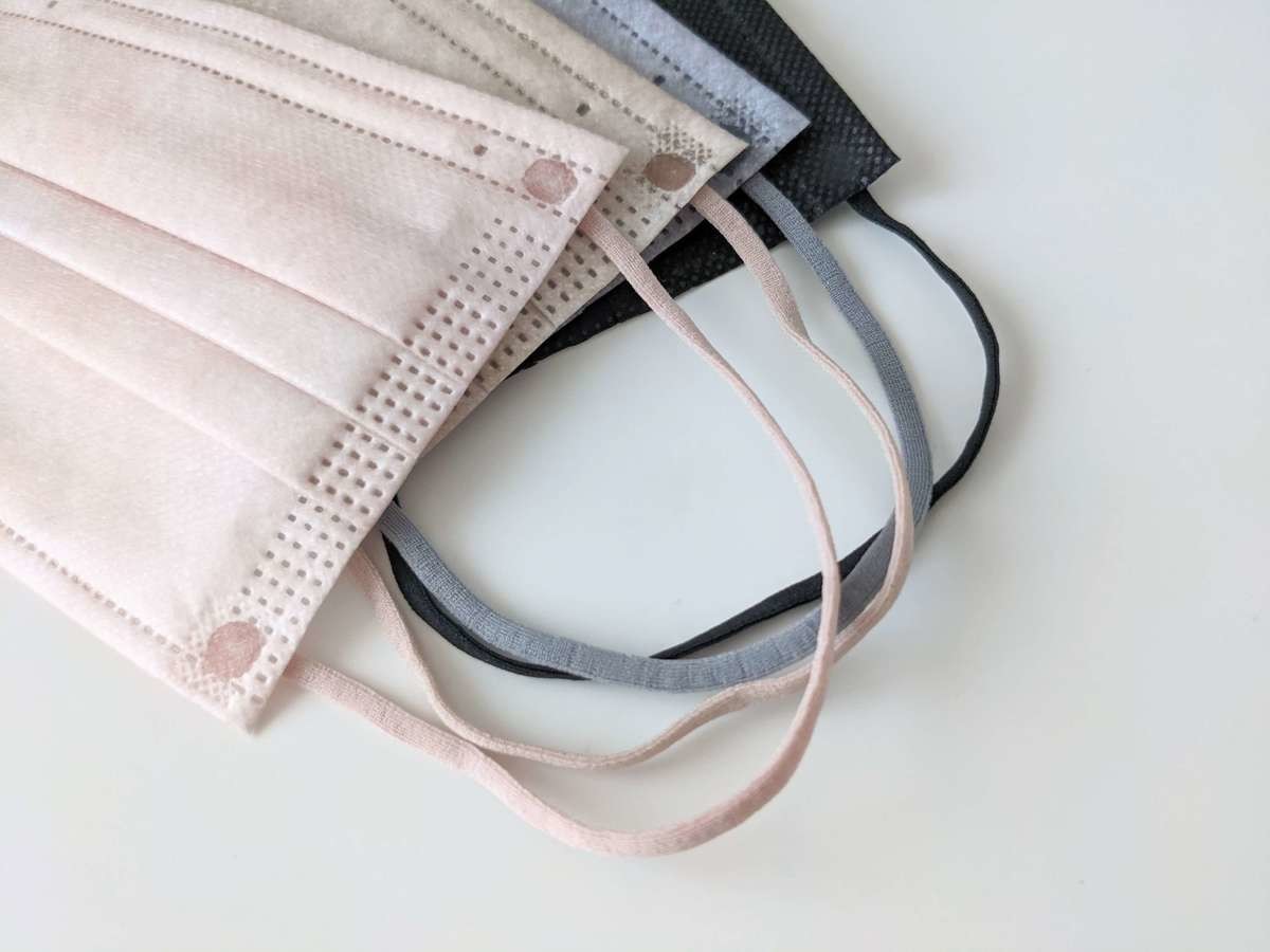 マスク紐は耳が痛くなりにくい平ゴムを使用。 1枚あたり約8円と高コスパですが、想像していたよりも厚みがあってしっかりしています。