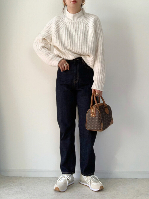 シンプルなのにざっくりとした編み目が存在感を引き出すチャンキーニットは、デニムと合わせるだけでおしゃれ見えします。