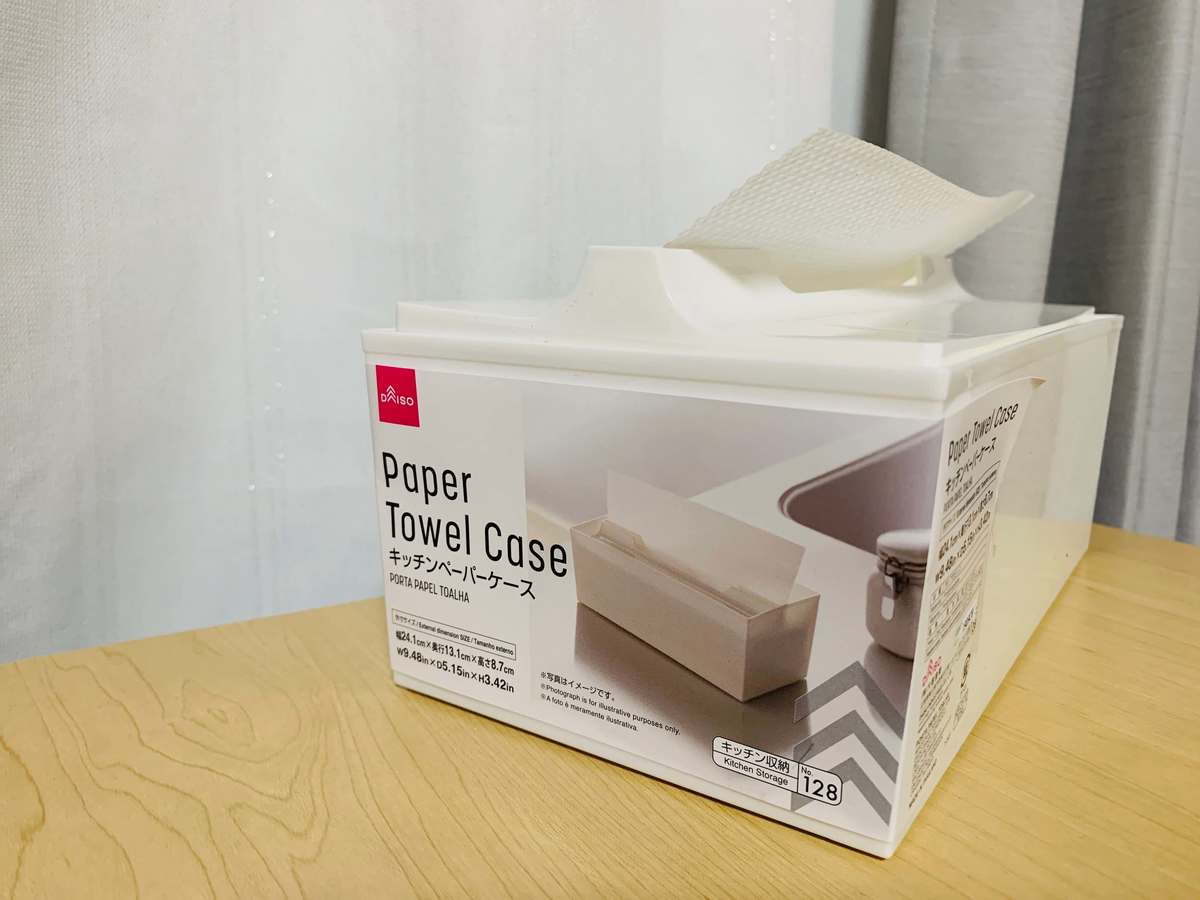 こちらは、私がずっと探していて2軒目のダイソーでようやく出会えた「キッチンペーパーケース」(110円 税込)。