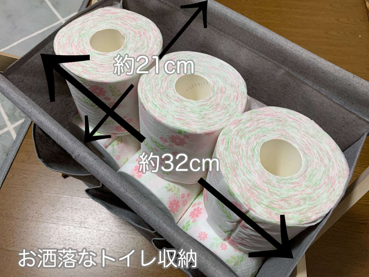 ちなみにダブルのトイレットペーパーだと、最大6個まで収納できます。上からお洒落な布を被せれば、中身が見えることもなく安心。