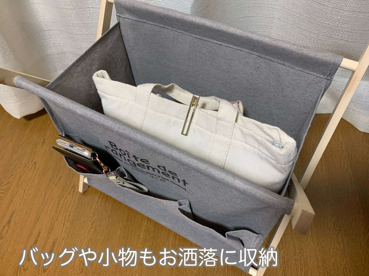 このラックに入れておけば、床にバッグを直接置かなくてすみます。中身もそのままの状態で出し入れでき、必要以上にバッグを触る必要がないのでおすすめ♡