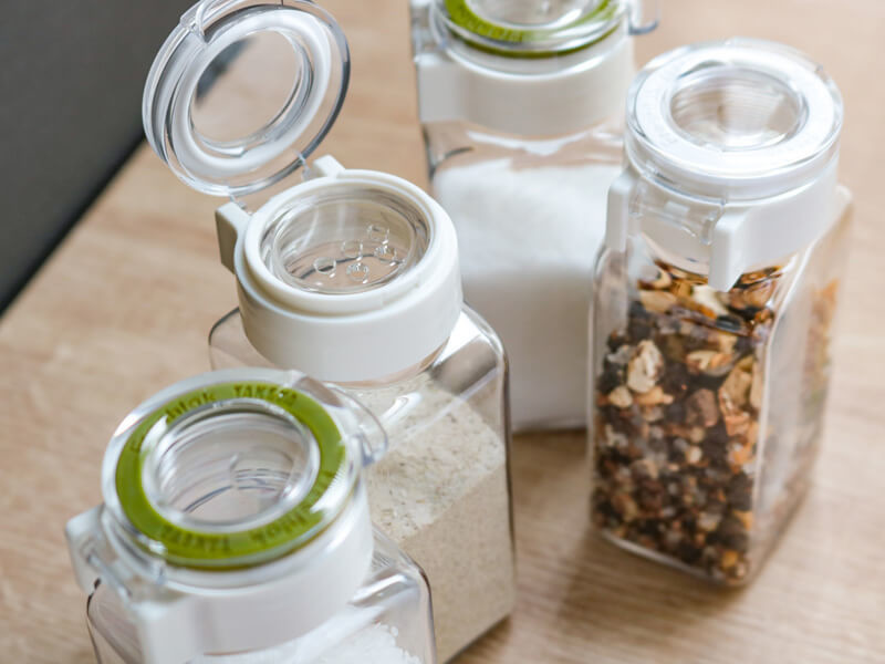 フレッシュロックは透明なので、上からも横からも、どこに置いても中身や残量がひと目で分かります。 形もシンプルな四角なので、並べるだけでお洒落に整頓出来るのが嬉しいですよね。 調味料を統一するだけで見た目がスッキリ整い使いやすくなるので、お料理が効率良く進みます。 キッチンだけでなく食卓に置いて使うのも、見栄えが良いのでぴったりです。