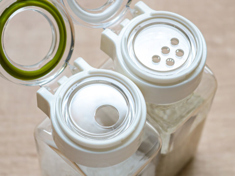 内蓋は大きめの1ホールと、小さめの5ホールの2種類があり、入れる物に合わせて穴の大きさを選べます。 穴口径は1ホール約9mm、5ホール約3mm。 塩・胡椒・スパイスだけでなく、コンソメや出汁の素・鶏ガラスープ等の詰め替えにもおすすめです。