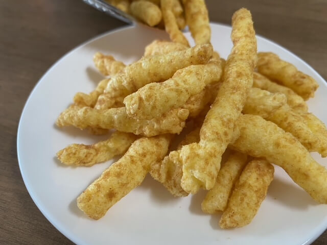 スナックにはたっぷりとにんにくパウダーが振られています。