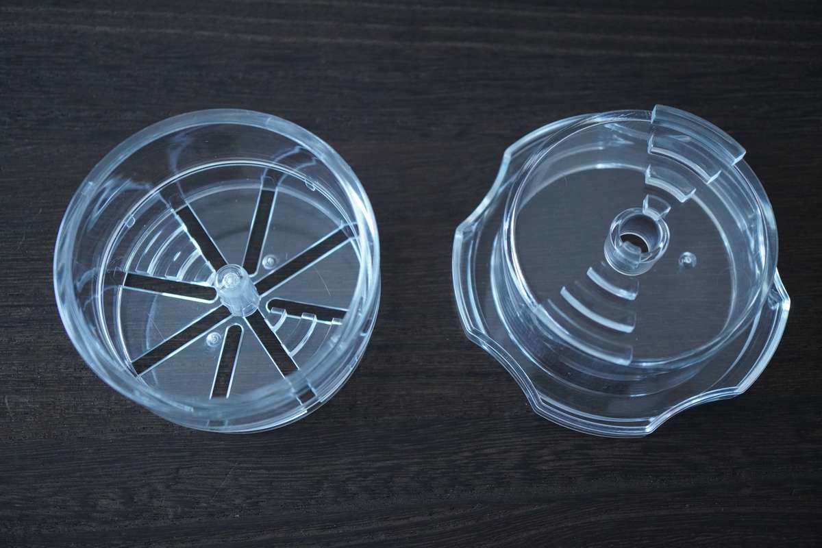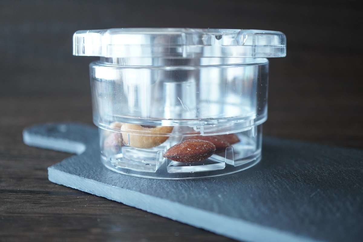 使い方は簡単!写真左の容器にナッツを入れて、写真右のフタをします。