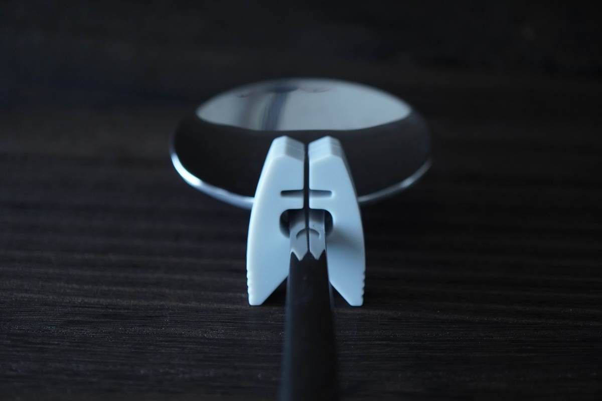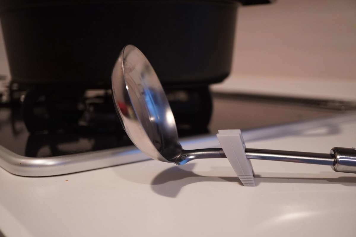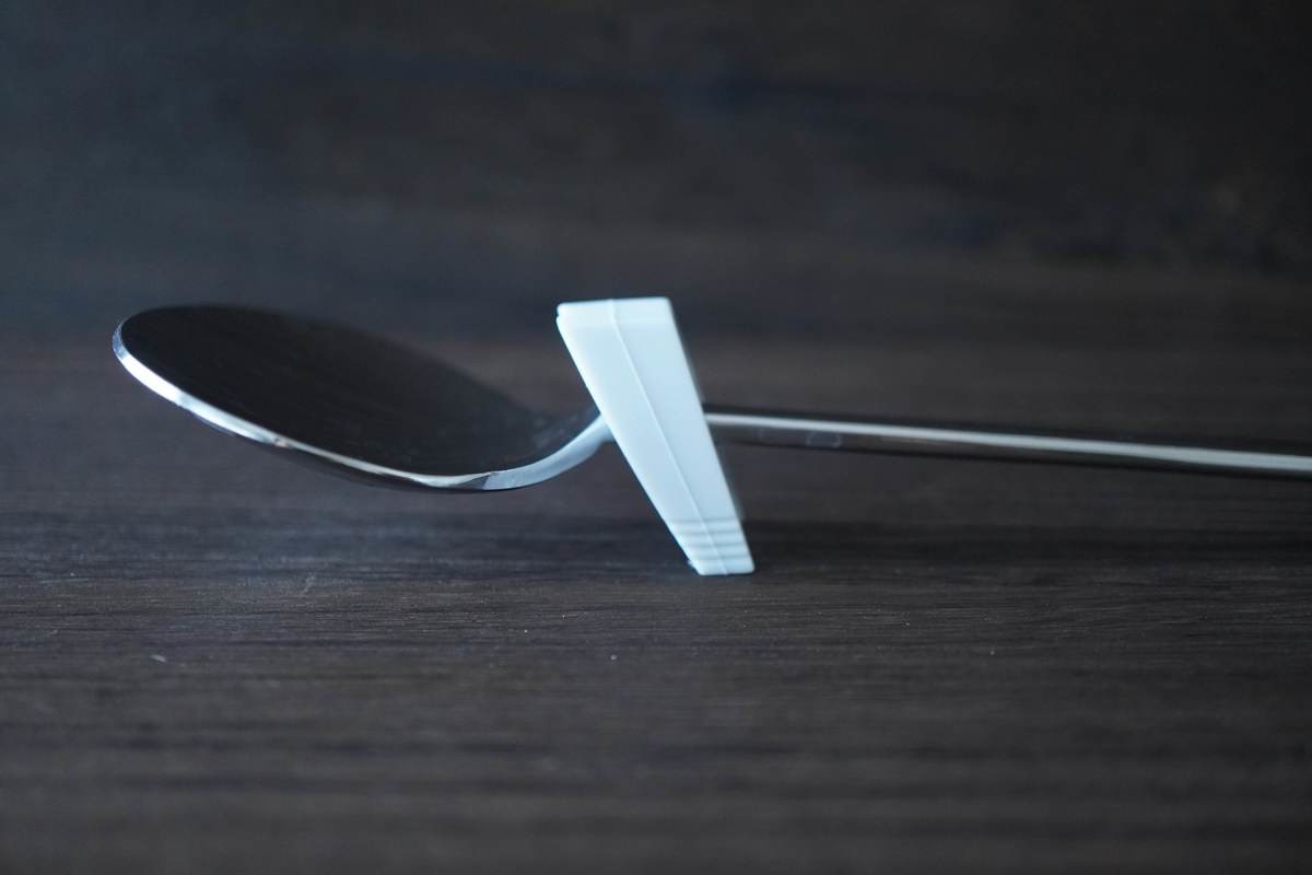 こちらはおたまやサラダサーバーなどに取り付けて直置き防止のスタンドにしたり、おたまをお鍋にひっかける際のストッパーとして使用します。