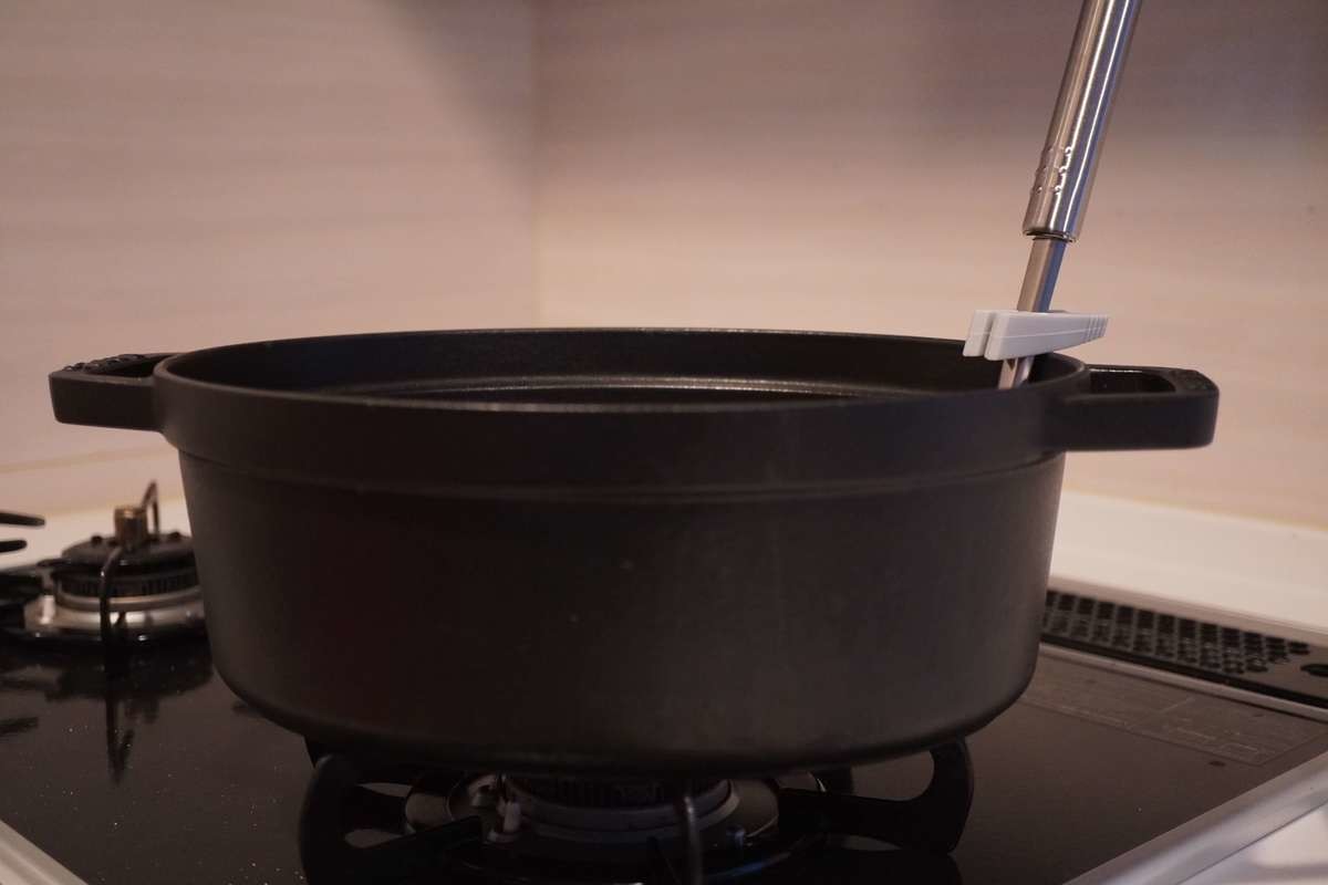 直置き防止スタンドの他にも、お鍋におたまなどをひっかけるストッパーとしても使えます。