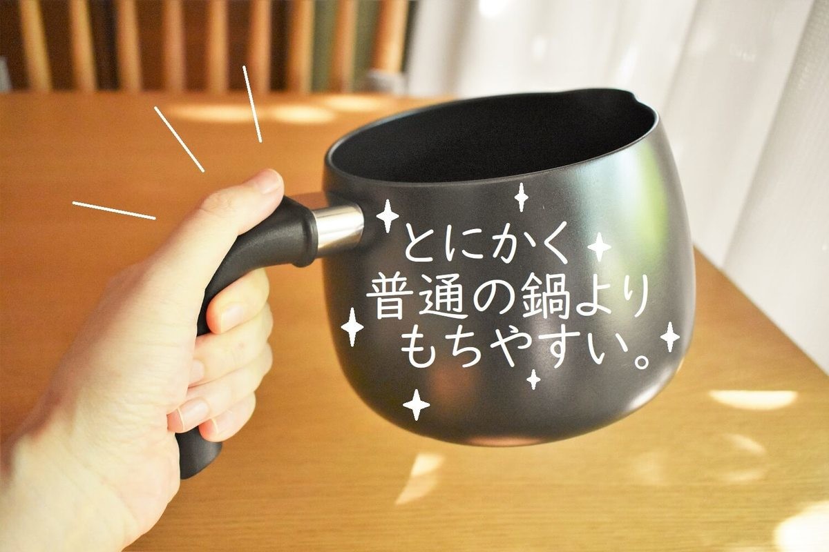 もう、本当にこれにつきます。このハンドルはケトルとしてお湯を注ぐときなどにこのような形状をしていますが、これが鍋としても持ちやすい!圧倒的です。