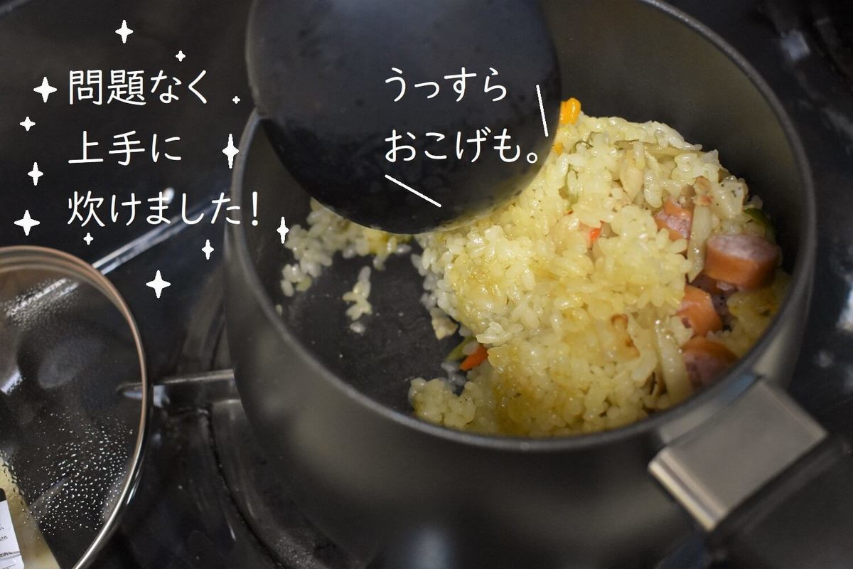 想像以上に手軽に「炒める+炊く」ができました。さて、そのお味は……?