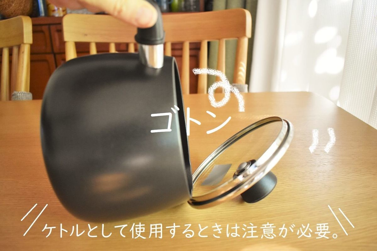 ケトルとして使用するときこれが一番やってしまいそうなのが「押さえておかないとフタが外れる」ということです。