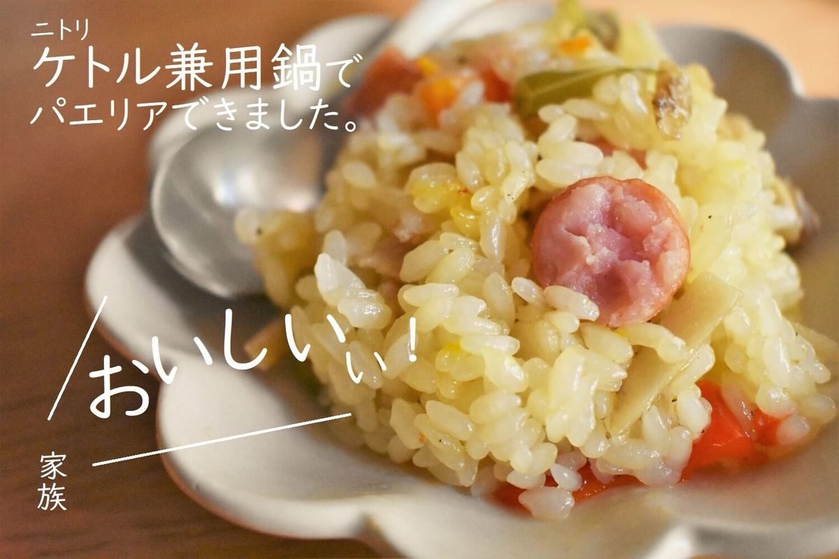 問題なく、おいしいパエリアでした!フタが少し開いているので、水分が飛びやすいのか、ちょっとかためでしたが、全く問題なく家族にも大好評でした。このケトル兼用鍋、フッ素加工でとても洗いやすいこともあり、お弁当づくりにもすごく役立ちそう。