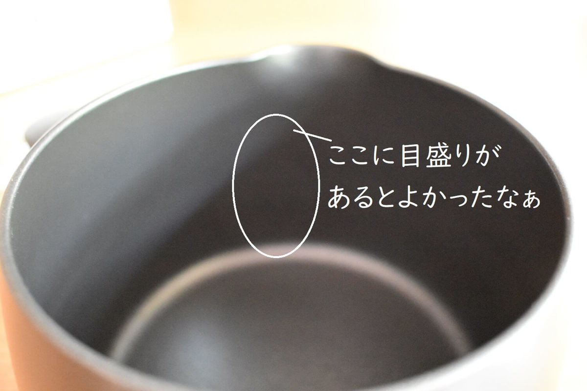 (1)鍋の内側に目盛りがないのが残念…!