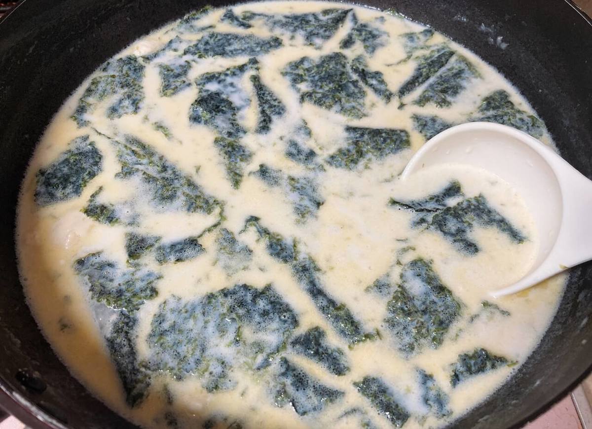 海苔を溶かしてホワイトソースを“もったり”の状態にするまでが根気のいる作業でした。