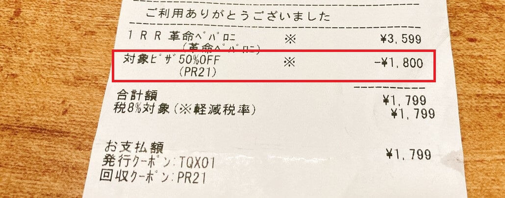 ちなみに、「満場一致で合格」と「合格」のピザでは、割引率が異なります。