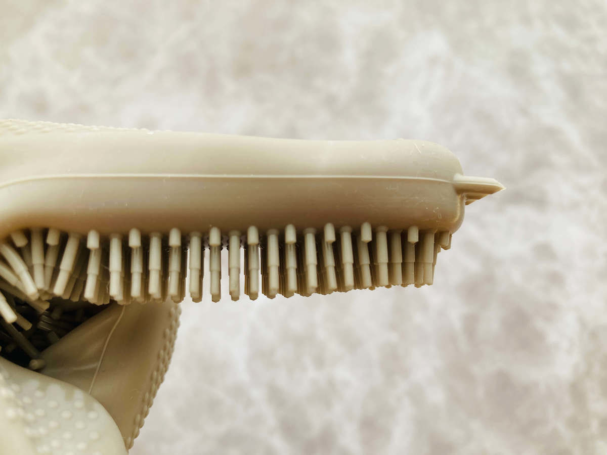 リニューアルしたのは色だけではありません。まず1つ目はブラシの数です。全ての指の先端に、猫の爪のようなブラシが追加されています!さらに全体のブラシの範囲も少し広がっていますね。