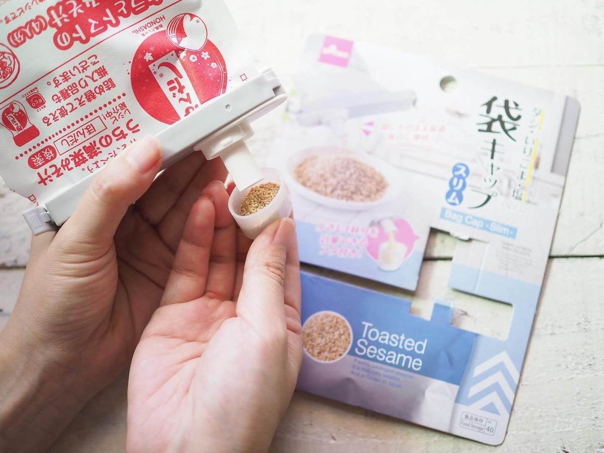 一度に使いきれない食品袋を、便利なキャップ付き袋にできる優れもの。