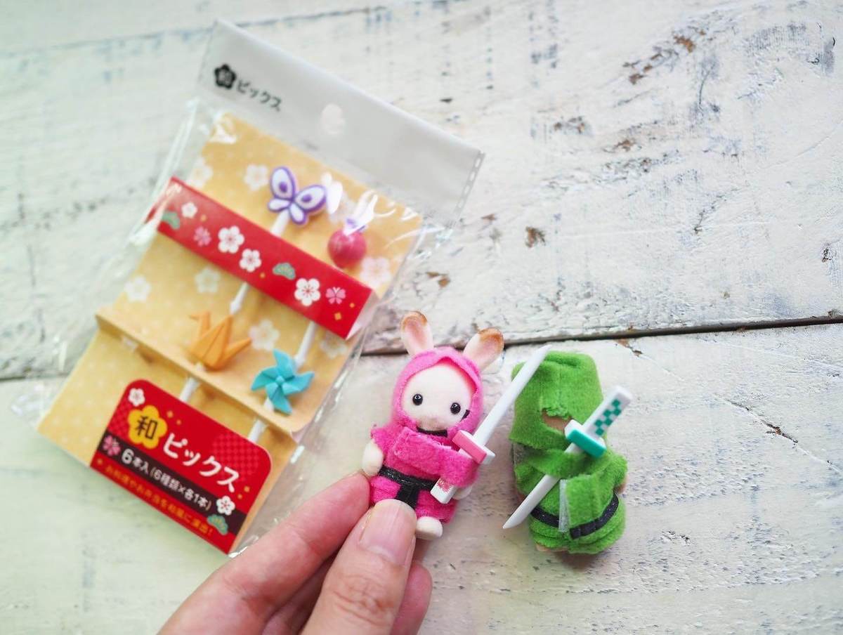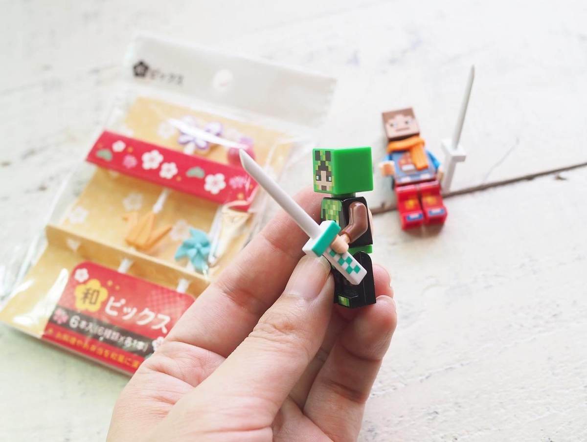 こちらは食品用のお弁当ピックとして販売されていますが、刀のピックがなんとレゴブロックの人形の手元にジャストフィットすることを発見!