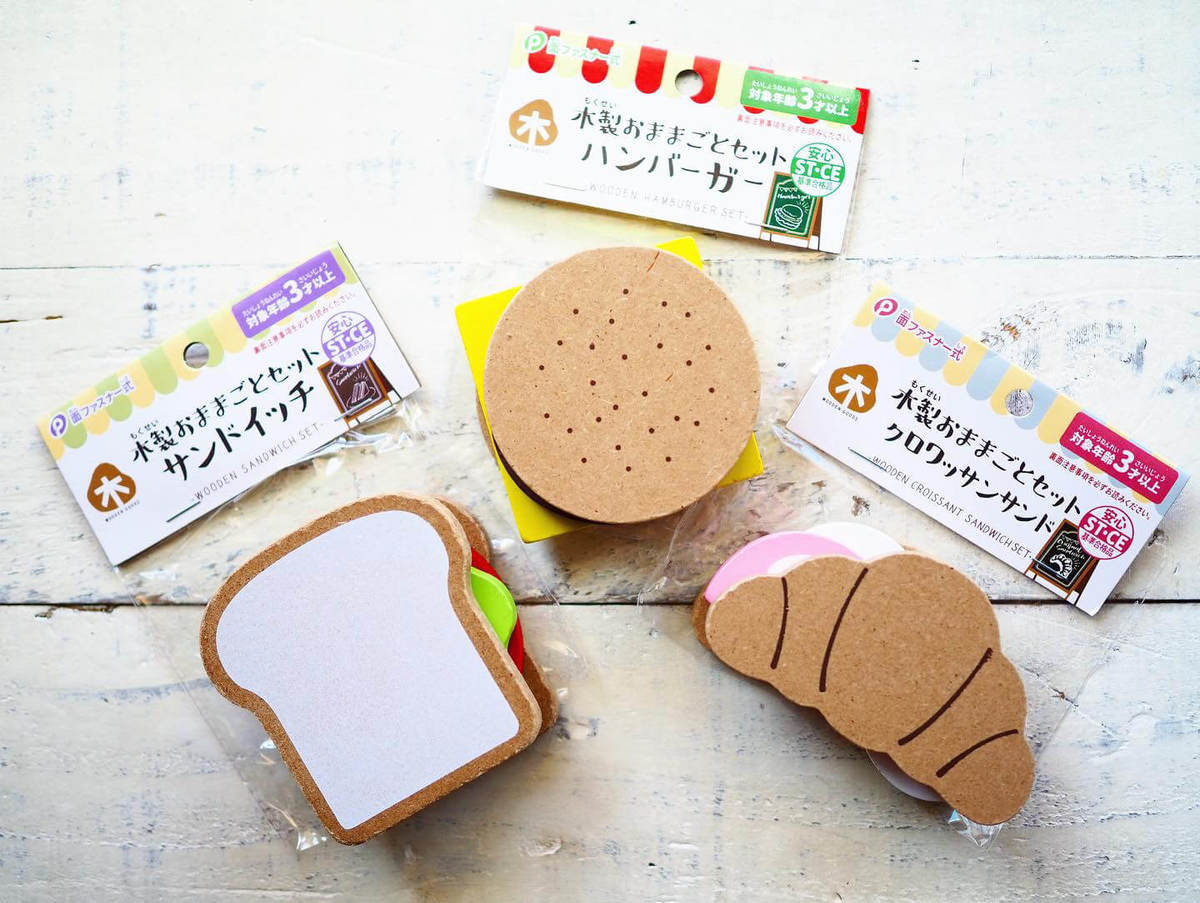 かわいい野菜や魚などの木製おままごとシリーズが大きな話題となりましたが、最近サンドイッチやハンバーガーなどの食べ物シリーズも発見♪