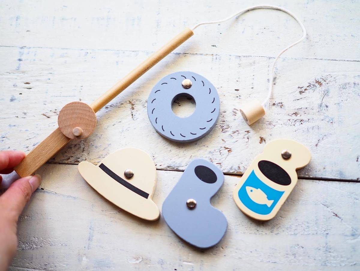 続いてご紹介するのも、木製おままごとシリーズの「木製お魚つりセット」です。