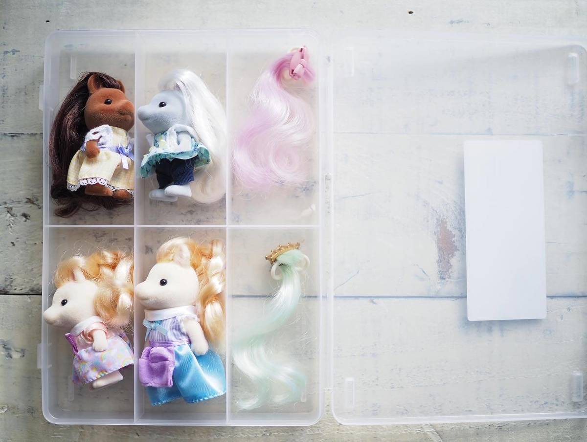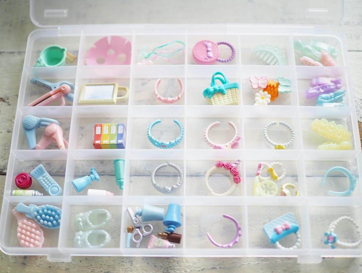 大きなおもちゃ箱にまとめて入れてしまうと、絡まったりぐちゃぐちゃになってしまう繊細なパーツも、仕切りケースに収納しておけばきれいをキープできますよ。