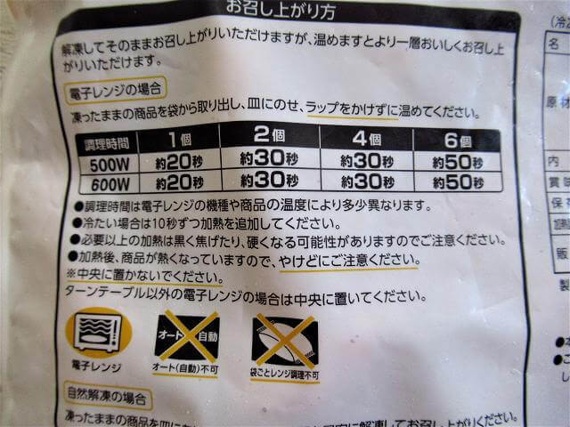 パケ裏で紹介されている調理方法は電子レンジで温めるか、自然解凍となっています。