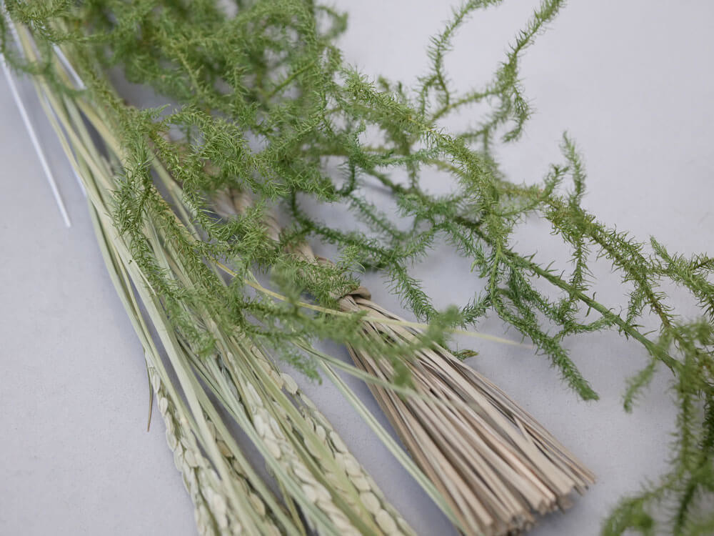 上部に小さな楕円形のしめ縄が施された「オーバル」はよりスリムな印象で、縦に伸びたヒカゲカズラと稲穂が強調されますね。