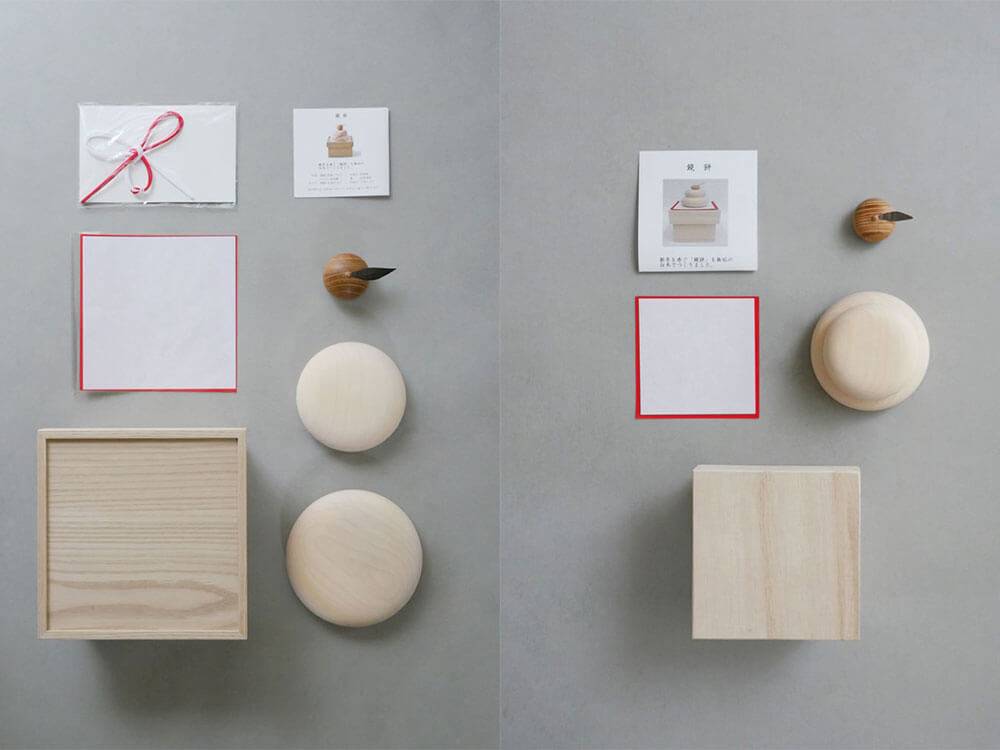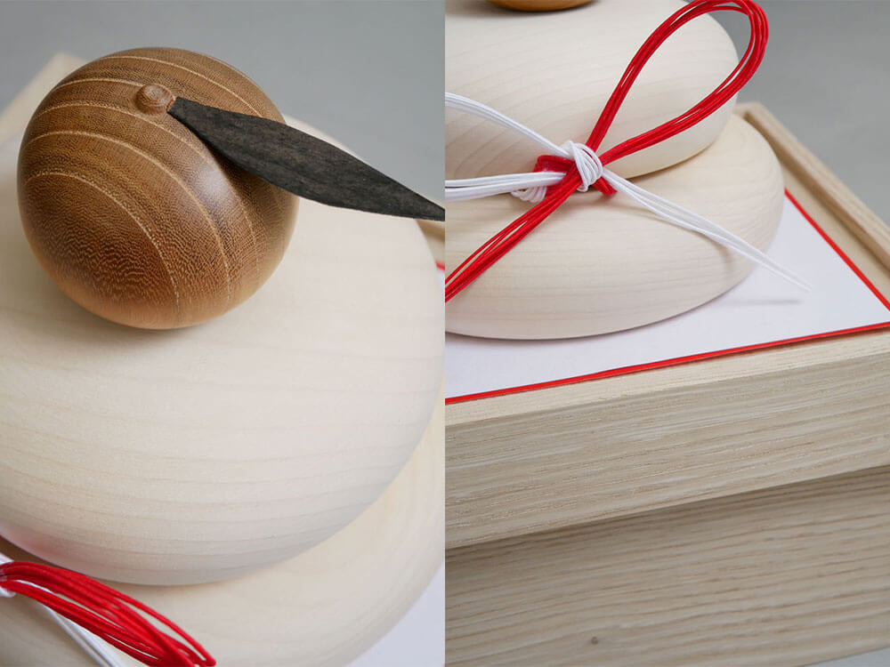 それぞれの木の特性を生かし、パーツごとに木の種類を変えているのが特徴の「鏡餅」。