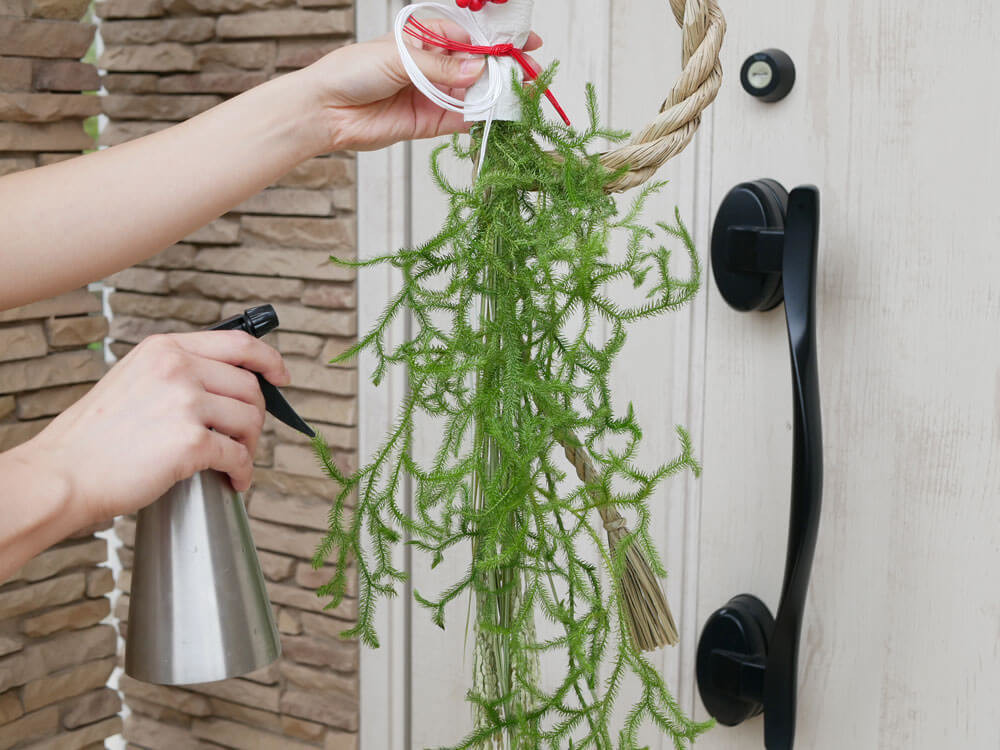 お手入れは、ヒカゲカズラ部分に霧吹きで湿らせる程度に水をかけると乾燥防止になります。(ドライになっても楽しめる素材でのおつくりになります。)