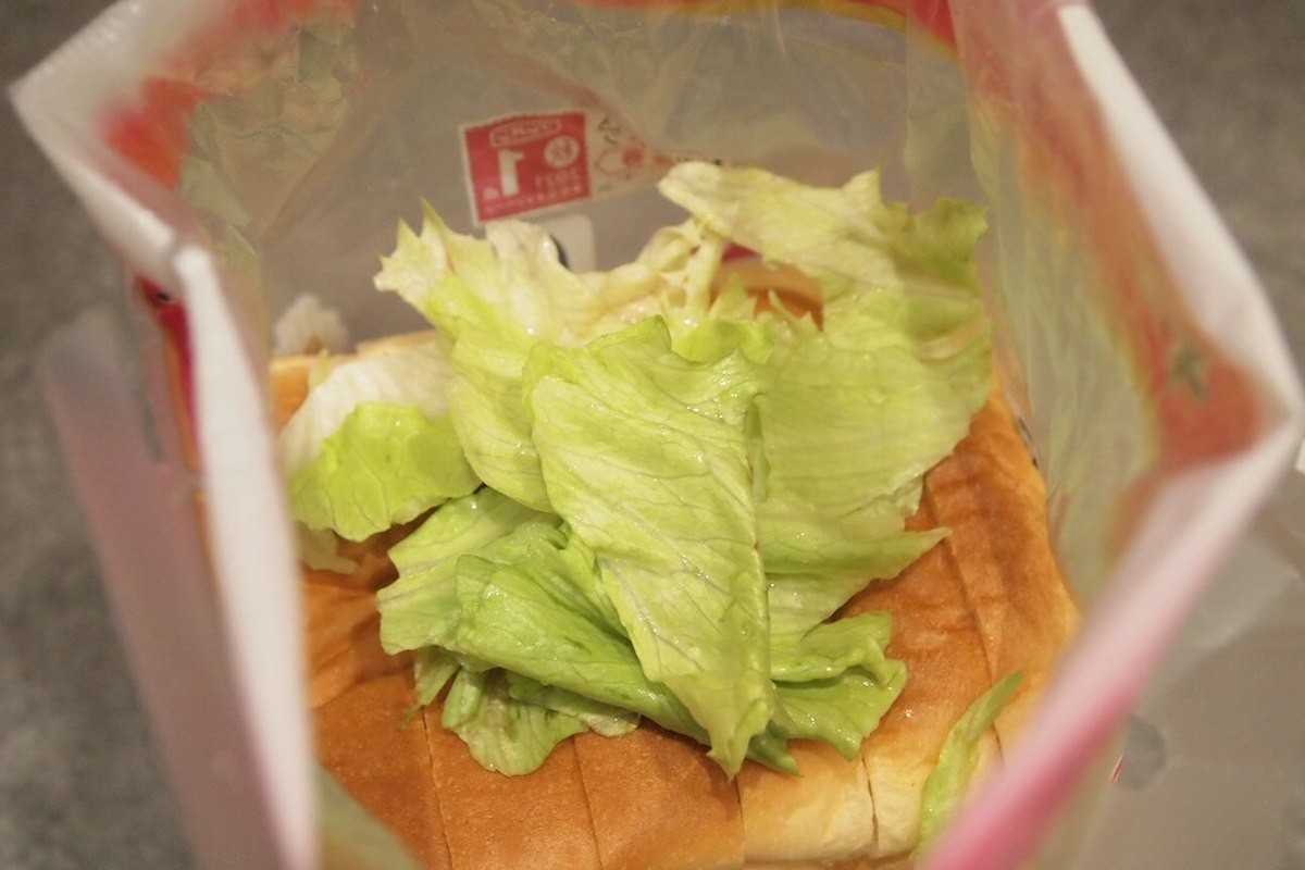 レタスは水分量が多いため、食パンと一緒に袋に入れておくと加湿して、パサつきを抑えてくれるんだそう。