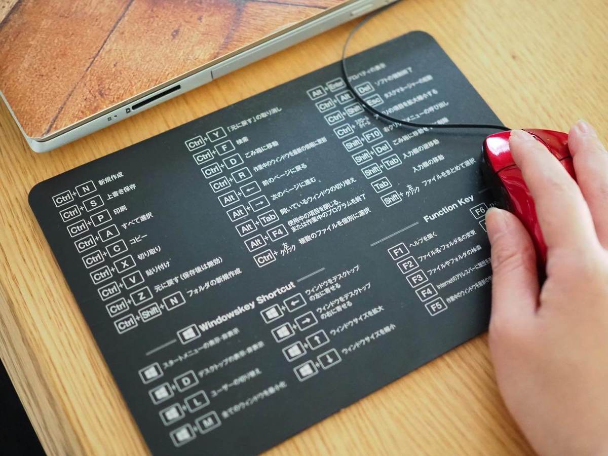 続いてご紹介するのは、ショートカットキー表がプリントされているマウスパッドです。