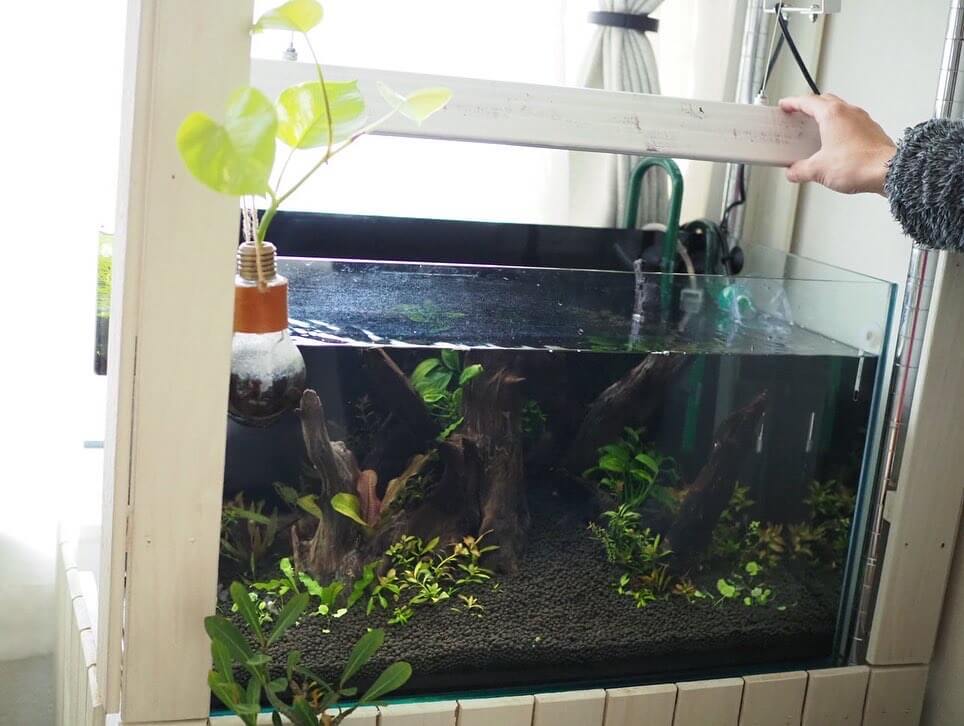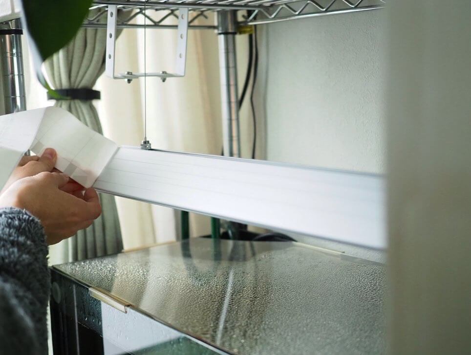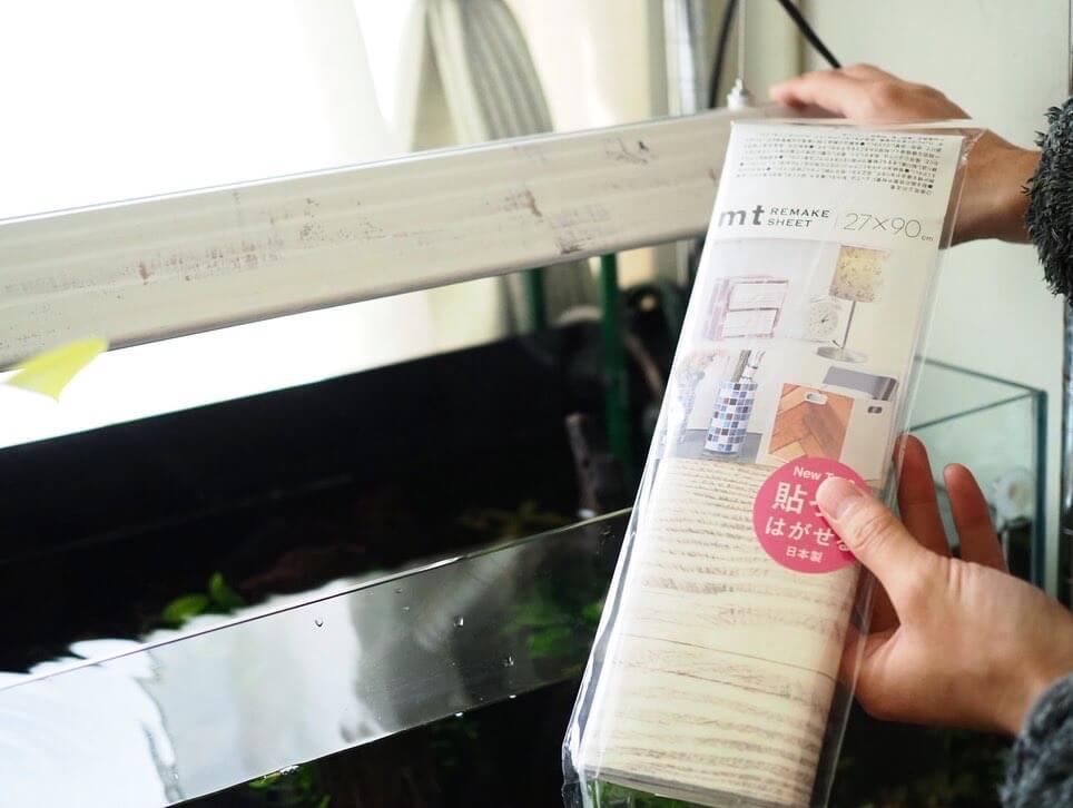 続いては水槽用のライトを白い木目調のシートでリメイクしていきます。
