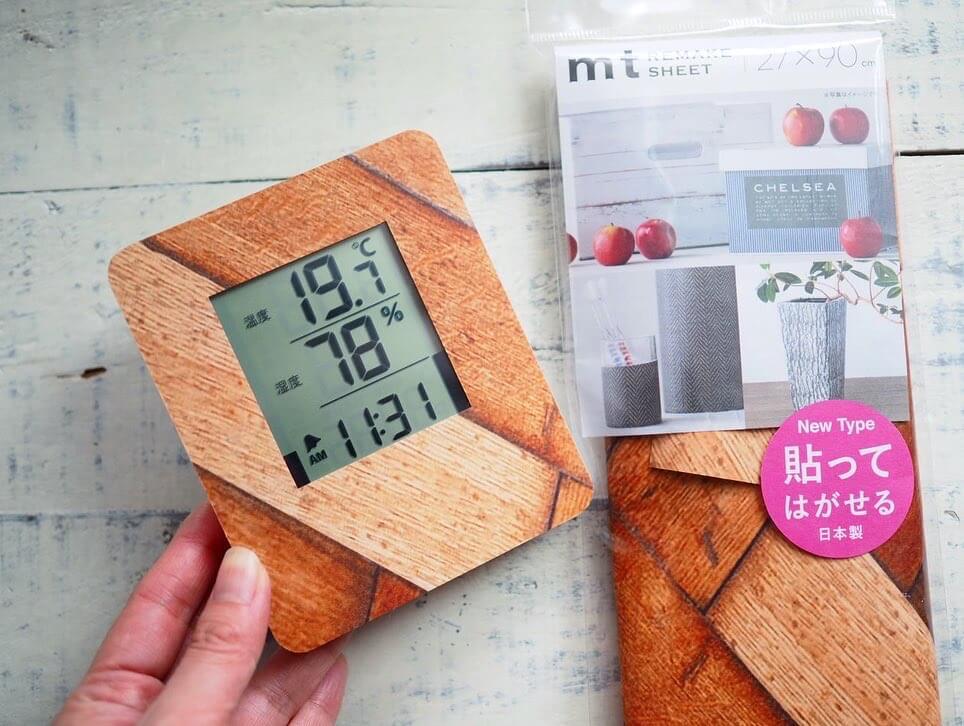 デジタル温湿度表示の部分以外に合わせてリメイクシートをカットしていきます。