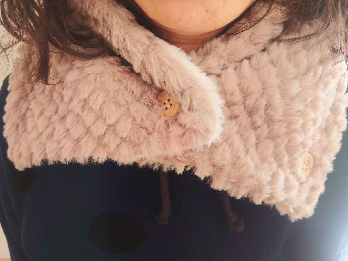 首元が寒くてさみしい時には、ボアのネックウォーマーがおすすめ。
