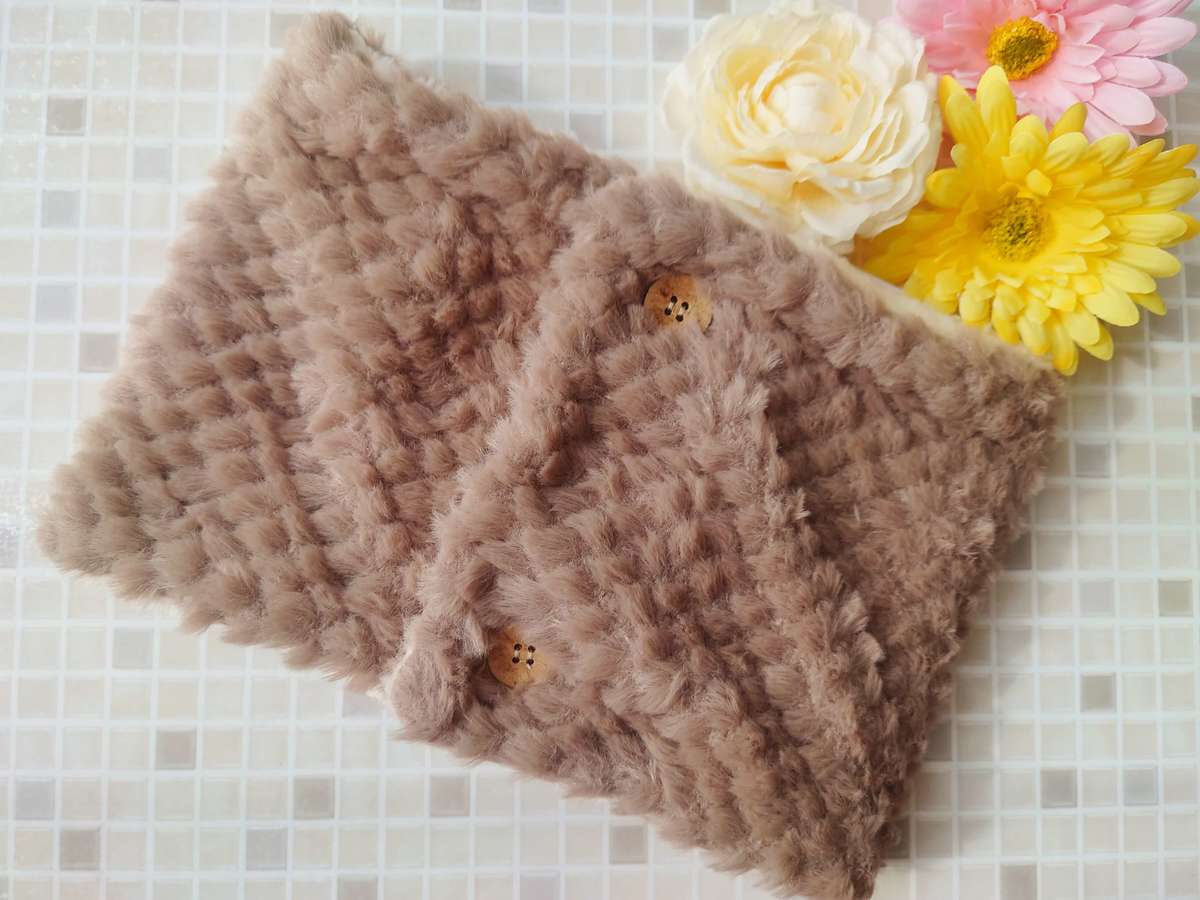 首を包み込んでくれ、フィット感も良好です。優しい色味のブラウンが様々な服に合います。