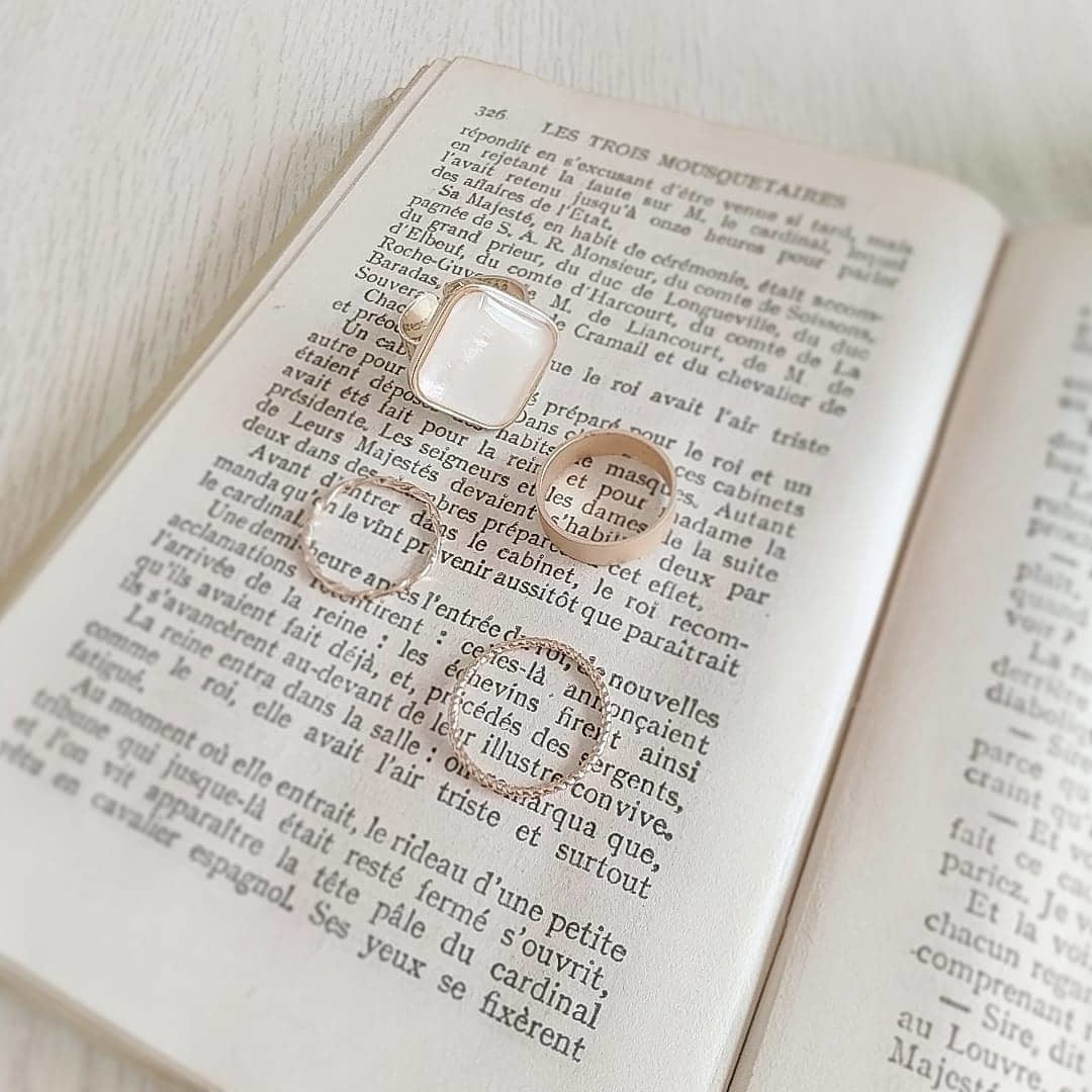 同じく@mimi_maison_blancheさんがおすすめしているのはセリアのリングで、「スクエア型リング」と「リングセット3P」。どちらも110円には見えませんよね。