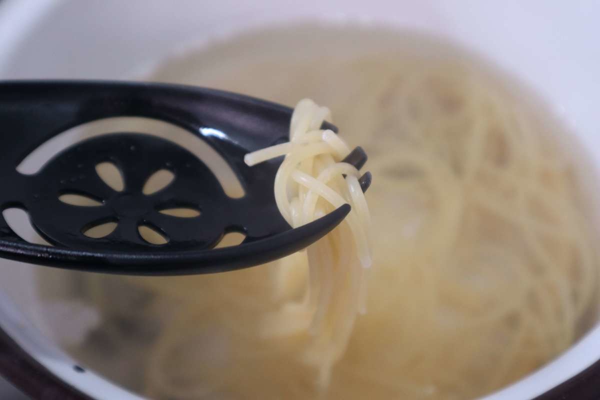 パスタを茹でる時にフォークで取り出して、そのままフライパンに移して調理できます。茹で加減を見る時も便利です。