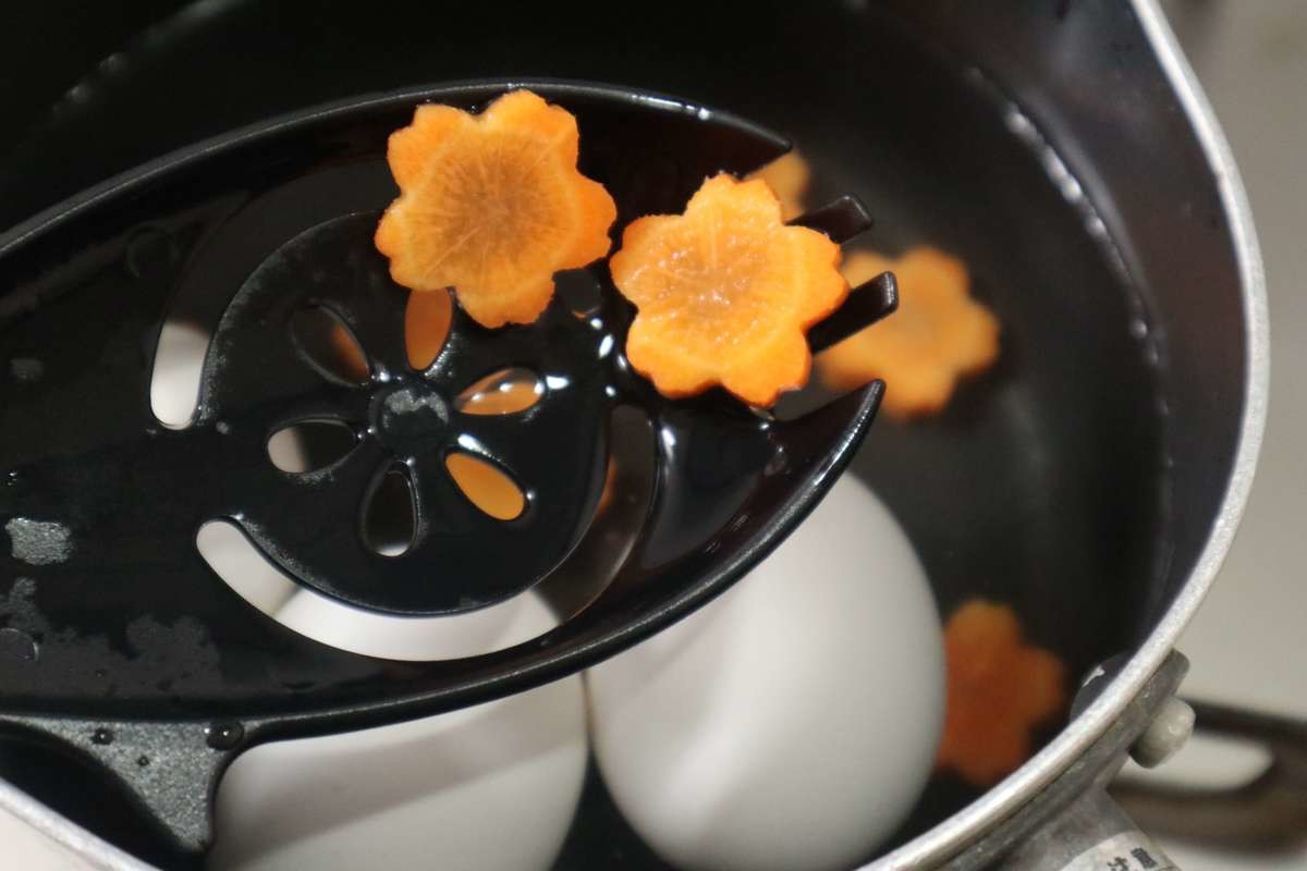 複数のものを同時に茹でた時に、茹で上がったものだけ湯切りして取り出すことができます。