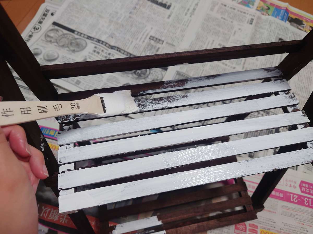 また、塗るときは下にビニールシートなど塗料が乾いたときにくっつかないものを敷くのがおすすめです。新聞紙を敷いたら、見事に裏側に貼り付いてしまいました(笑)。