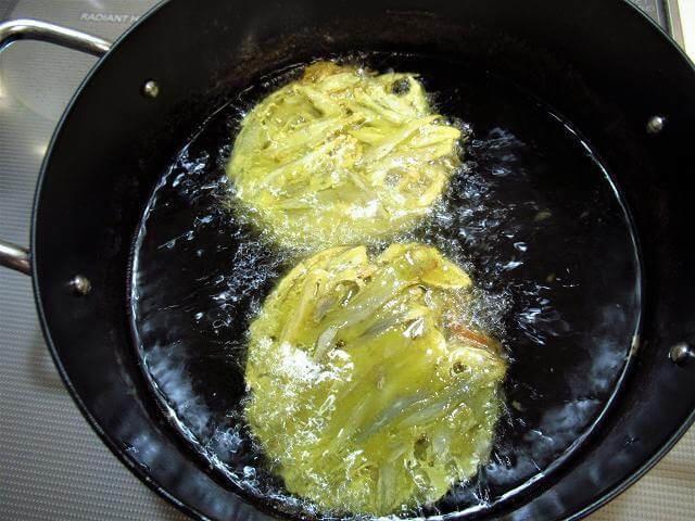 業務スーパーのごぼうかき揚げは、油で揚げて完成させます。