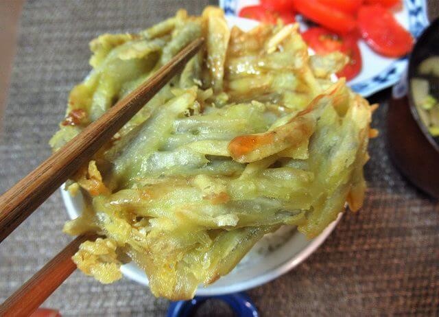 サクッと油で仕上げた、ごぼうかき揚げを今回は「かき揚げ丼」にして実食レポしたいと思います。