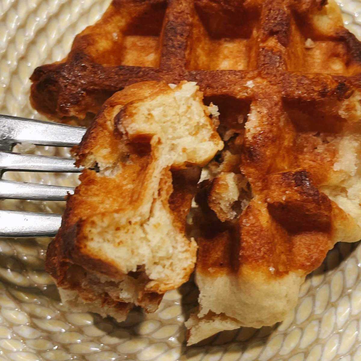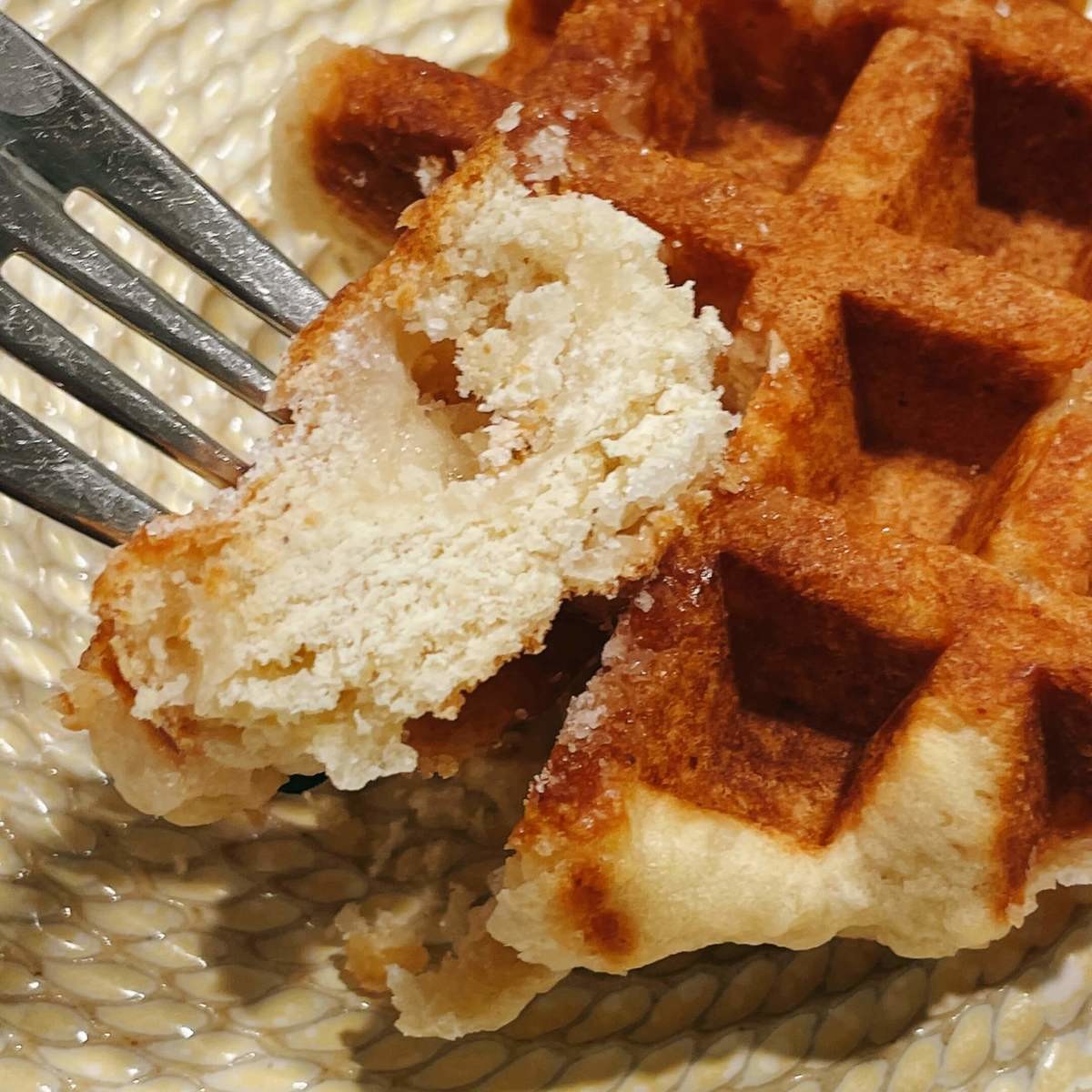 ベルギーワッフルの表面にかかっている砂糖がオーブントースターで焼いたことで程よく溶けてさらに甘みがあります。