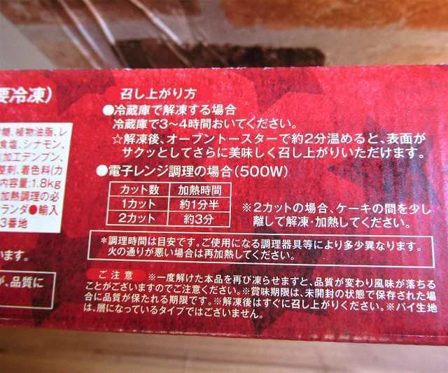 クラシックアップルパイは、冷凍での販売で賞味期限がかなり長いのが特徴。
