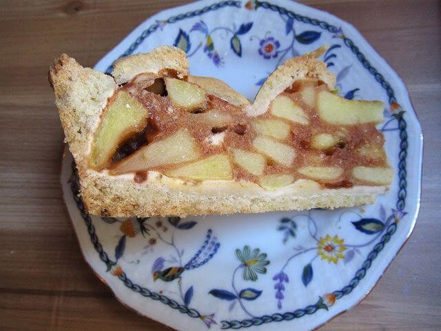 側面をみてもタルト生地にしか見えません……。個人的には、タルト生地大好きなので、特に問題はありませんが、一般的なアップルパイを望んで購入したかたには残念ポイントかも……。
