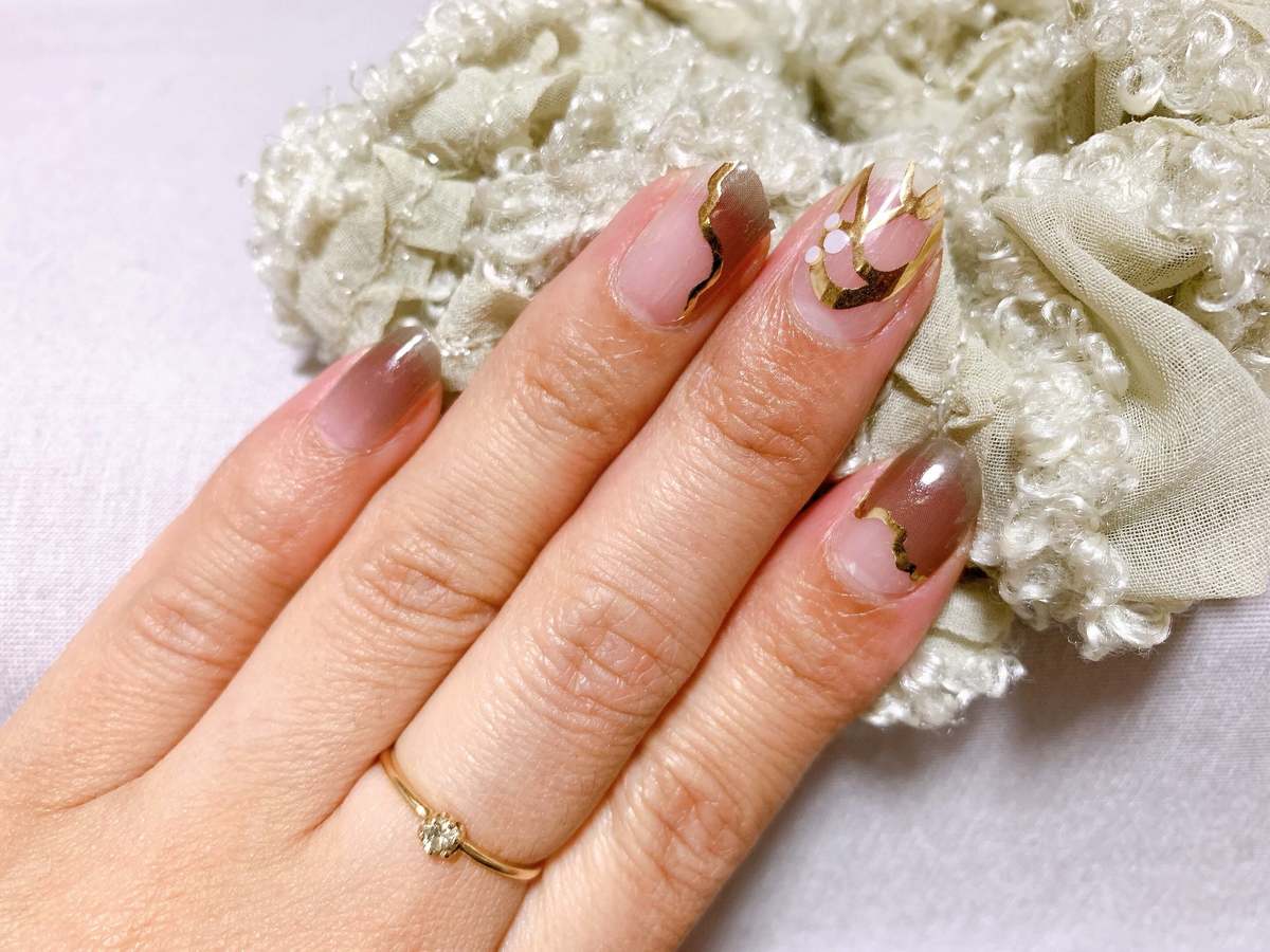 クリアベースに、ゴールドのラインやキラキラのラメが入ったゴージャス系のデザイン。パーティーやデートなど特別な日にピッタリです!