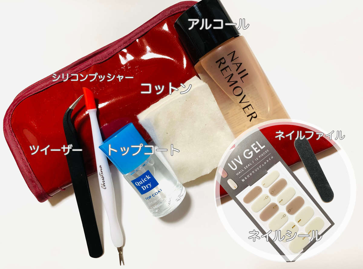 このジェルネイルシールは、ミニサイズのネイルファイルが付属しているのでお得ですよ。 この他に、アルコール、コットン、トップコート、シリコンプッシャー、ツイーザーなどがあれば完璧です!